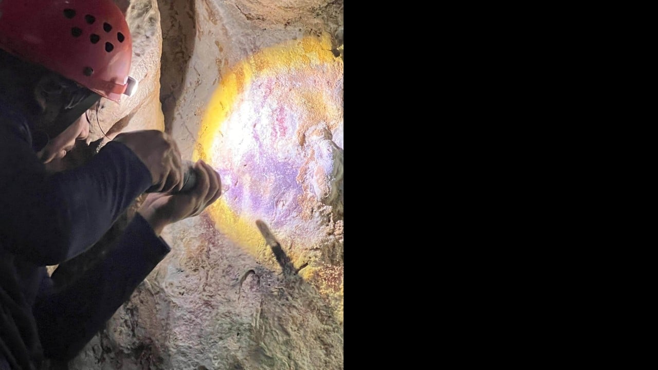 Dating back at least 67,800 years, the faded stencil was found hiding beneath a more recent chicken sketch in Metanduno cave on Muna Island.